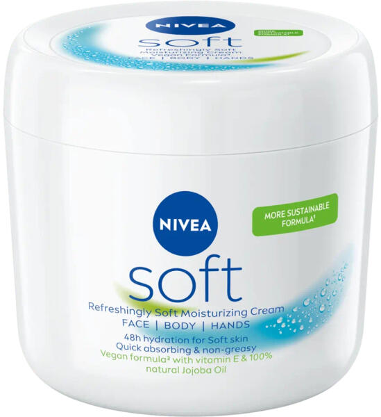 A Nivea Soft rendkívül hatékony hidratáló mindennapi használatra. A frissítő textúra alkalmas az egész test, kéz és arc hidratálására.