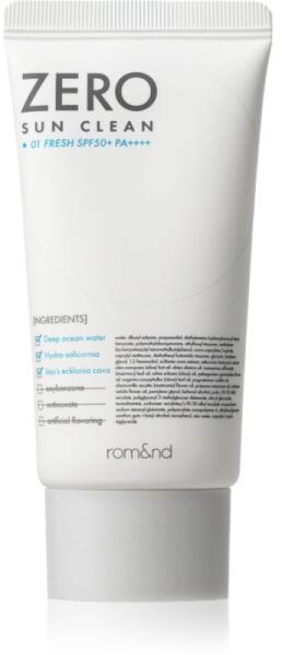 rom&nd Zero Sun Clean ásványi védő fluid arcra SPF 50+ árnyalat 01 Fresh 50 ml